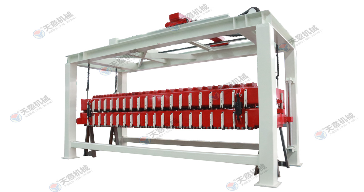 坯體經(jīng)過發(fā)泡靜停達到切割要求后模具轉移至切割區(qū),由翻轉機分離模具并將坯體翻轉90度放到蒸養(yǎng)小車上,然后經(jīng)過切割工序?qū)ε黧w進行側面切割刨槽及水平和垂直分割,使之達到外觀尺寸要求,切割工作可以機械化進行也可人工操作,這道工序直接決定ALC板材的制品外觀質(zhì)量以及某些內(nèi)在質(zhì)量。