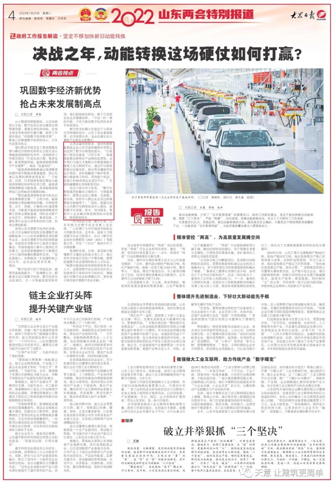 會(huì)議期間,劉洪彬提交了《關(guān)于加快山東省中小企業(yè)數(shù)字化轉(zhuǎn)型的建議》的提案,并就數(shù)字化轉(zhuǎn)型的相關(guān)內(nèi)容接受了大眾日?qǐng)?bào)記者的采訪。劉洪彬告訴記者,“以前客戶(hù)使用設(shè)備是‘不壞不休’,每逢維修都會(huì)影響生產(chǎn)運(yùn)轉(zhuǎn)的連貫性。去年我們搭建了裝配式建筑工業(yè)互聯(lián)網(wǎng)平臺(tái),通過(guò)平臺(tái)能看到售出設(shè)備電機(jī)、液壓等關(guān)鍵部件的運(yùn)行情況,及時(shí)提醒客戶(hù)維護(hù)保養(yǎng),減少維修停工時(shí)間,受到客戶(hù)歡迎,目前已有300多家企業(yè)進(jìn)駐平臺(tái)。“數(shù)字化轉(zhuǎn)型通用性解決方案較少,可借鑒案例少,需要企業(yè)自己摸索,見(jiàn)效慢、成本高,有的中小微企業(yè)還沒(méi)過(guò)陣痛期就先被拖垮了。”因此,他建議“加大公共數(shù)字化轉(zhuǎn)型促進(jìn)中心建設(shè),提供數(shù)字化資源、技術(shù)、培訓(xùn)服務(wù),幫助中小企業(yè)解決轉(zhuǎn)型遇到的共性需求,降低轉(zhuǎn)型成本。”