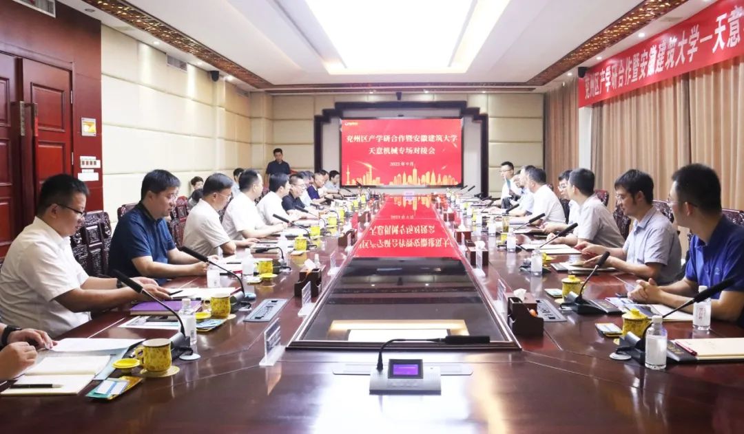 安徽建筑大學(xué)蔡校長一行8人,兗州區(qū)委書記王慶一行9人,蒞臨天意機(jī)械參加了對接會(huì),天意機(jī)械董事長劉洪彬參加了對接會(huì)。區(qū)委副書記于長海主持會(huì)議。