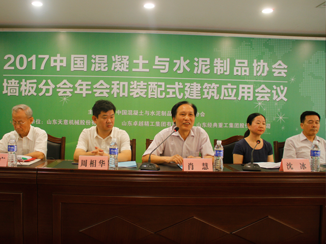 本次會議由中國混凝土與水泥制品協(xié)會墻板分會秘書長周炫主持、會議開始首先由兗州區(qū)副區(qū)長周相華發(fā)表講話,表示對眾多行業(yè)專家、學者來到兗州表示歡迎,肯定了此次會議的盛大召開將對兗州有力推進建筑和新材料的大跨越大發(fā)展。由中國混凝土與水泥制品協(xié)會秘書長沈冰發(fā)表講話,表示對到場的嘉賓、專家、學者以及支持本次會議召開的天意機械表示感謝,系統(tǒng)介紹了大力發(fā)展裝配式建筑中建筑墻板的機遇與挑戰(zhàn)。西安墻體材料研究設(shè)計院黨委書記肖慧對內(nèi)隔墻板在裝配式建筑應(yīng)用要求及內(nèi)隔墻板推動行業(yè)發(fā)展做了系統(tǒng)介紹,希望隔墻板行業(yè)能夠借助裝配式建筑的東風,更高更大發(fā)展。住房和城鄉(xiāng)建設(shè)部科技與產(chǎn)業(yè)化發(fā)展中心副總工屈宏樂發(fā)表講話,表明建筑和建材業(yè)要加強交流,重點分析了建材產(chǎn)品和建筑節(jié)能應(yīng)用的短板做的詳細分析,原國家建材局政策法規(guī)司司長陳福廣,對墻板發(fā)展存在的問題以及墻板如何適應(yīng)裝配式發(fā)展做的詳細分析。由中國混凝土與水泥制品協(xié)會墻板分會秘書長周炫發(fā)表了 2016年墻板分會工作總結(jié)以及2017年墻板分會工作計劃,天意機械董事長劉洪彬發(fā)表講話表示,此次會議必將推進行業(yè)進步及提高天意機械技術(shù)研發(fā)水平、產(chǎn)品科技含量與企業(yè)核心競爭力,對促進我公司產(chǎn)業(yè)轉(zhuǎn)型升級和裝配式建筑推進都具有重要的現(xiàn)實意義和深遠影響, 接著由天意機械銷售經(jīng)理秦艷慧對天意的綠色建筑裝備的研發(fā)、以及天意機械新型綠色節(jié)能建材裝備在行業(yè)中的應(yīng)用優(yōu)勢了系統(tǒng)介紹。由裝配式建筑日本留學博士李營博士,對裝配式建筑在住房中的應(yīng)用做了主題報告。