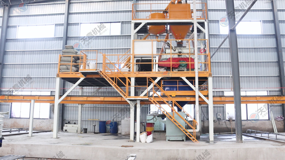 1.采用水泥發(fā)泡墻板專用5立方雙螺帶式高速攪拌機,有效容積為3.5立方,攪拌均勻,攪拌速度快(發(fā)泡完成后60秒內可將泡沫和料漿攪拌均勻),整體攪拌周期6-8分鐘/次,單次攪拌可澆筑一臺20塊墻板機,雙寬螺帶式設計,可有效的降低泡沫破損率.