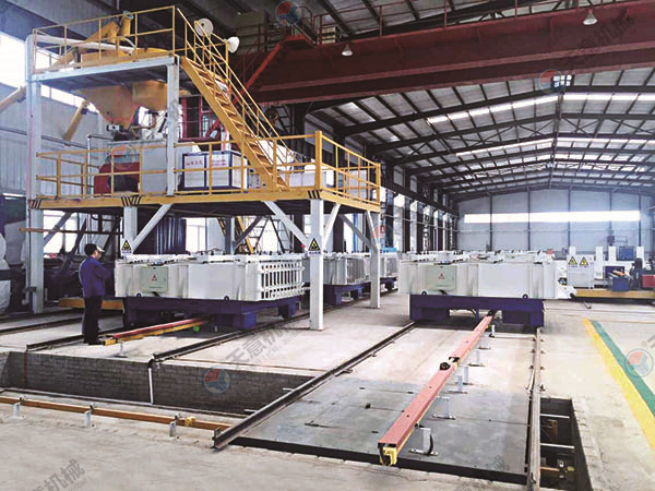 天意公司自主研發(fā)的大型攪拌設(shè)備配有自動配料系統(tǒng),結(jié)合材料的性能使料漿攪拌更均勻,能夠很好的融合在一起。料漿泵送系統(tǒng)更好的將攪拌好的料漿輸送到設(shè)備里面,澆注模式更簡單方便。發(fā)泡系統(tǒng)采用變頻發(fā)泡技術(shù),提高了發(fā)泡速度,節(jié)省了原材料,墻板成型機(jī)自動行走,產(chǎn)品成型速度高。